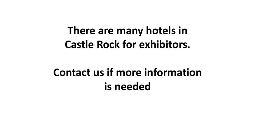 Castle Rock has a variety of hotels for participants. If you need more information or recommendations, please contact us.